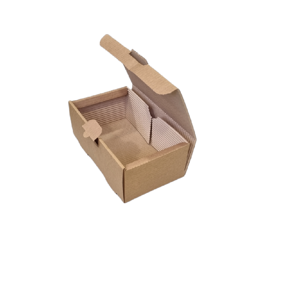 Οικολογική βιοδιασπώμενη και κομποστοποιήσιμη συσκευασία, κατασκευασμένη από πρωτογενές χαρτόνι, με κυματοειδές χαρτί χωρίς εσωτερική επίστρωση πολυαιθυλενίου (PE), διαστάσεων 22cm x 13cm x 7cm. Συσκευασία κιβωτίου 1 πακέτο των 100 τεμαχίων.