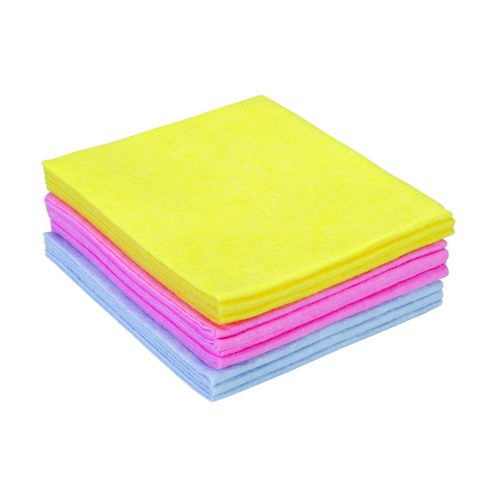 Πανί καθαρισμού 50% βισκόζης διαφόρων χρήσεων και διαστάσεων 30cm x 38cm . Διατίθεται μαζί σε τρία χρώματα, ροζ, μπλέ και κίτρινο. Συσκευασία 10 τεμαχίων.