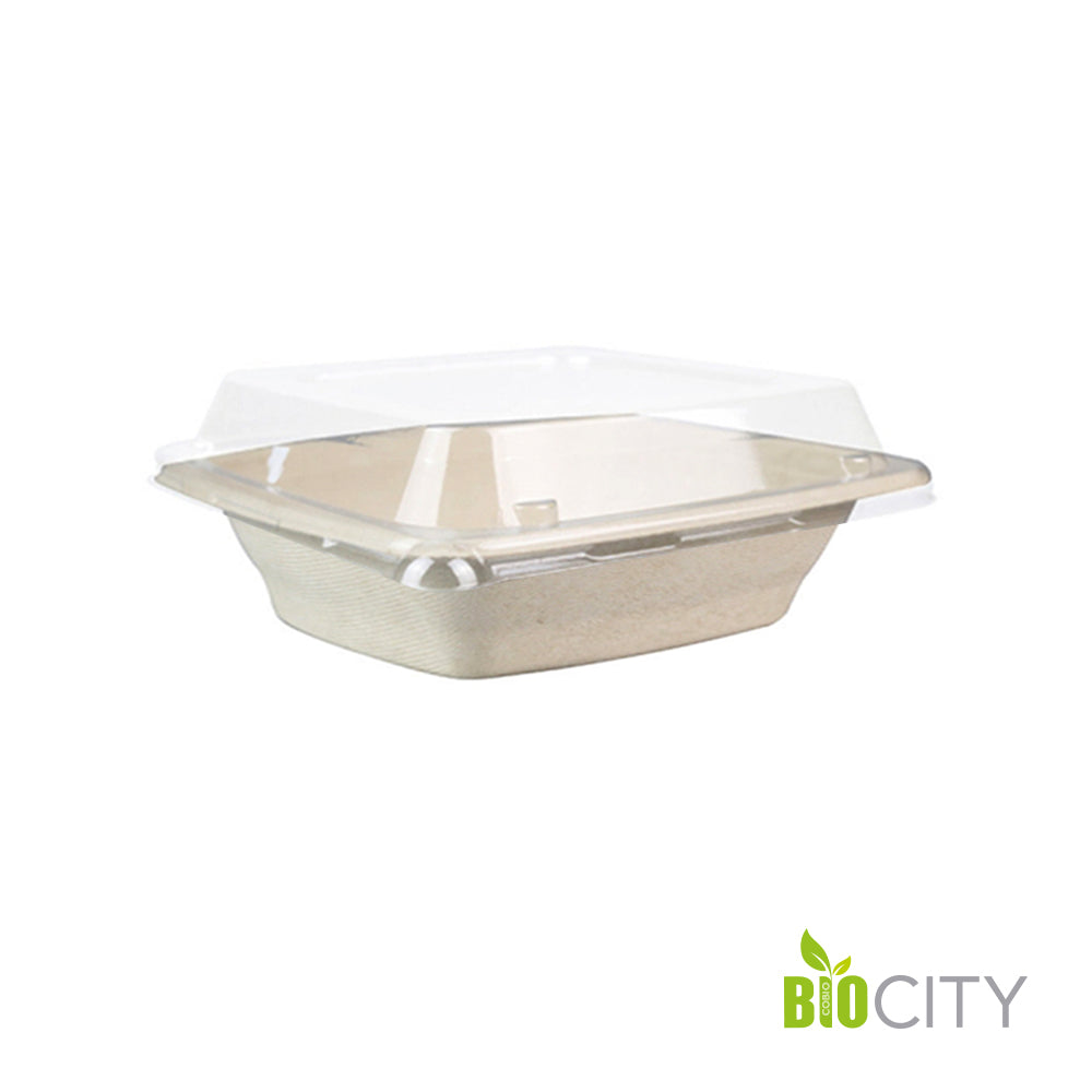 Ecofriendly τετράγωνο σκεύος, κατασκευασμένο από ζαχαροκάλαμο (bagasse), 16oz (500cc). Κατάλληλο για ζεστά και κρύα φαγητά, όπως επίσης και για χρήση σε φούρνο μικροκυμάτων. Ιδανικό για σαλάτες. Κατασκευασμένο από ζαχαροκάλαμο είναι πλήρως βιοδιασπώμενο και βιοαποικοδομήσιμο προϊόν για να τοποθετείται απευθείας σε κάδους με οργανικά απορρίμματα μαζί με τα υπόλειμμα τροφής. Διαθέτουν όλα τα απαραίτητα πιστοποιητικά καταλληλότητας για επαφή με τρόφιμα. Συσκευασία κιβωτίου 6 πακέτα των 50 τεμαχίων.