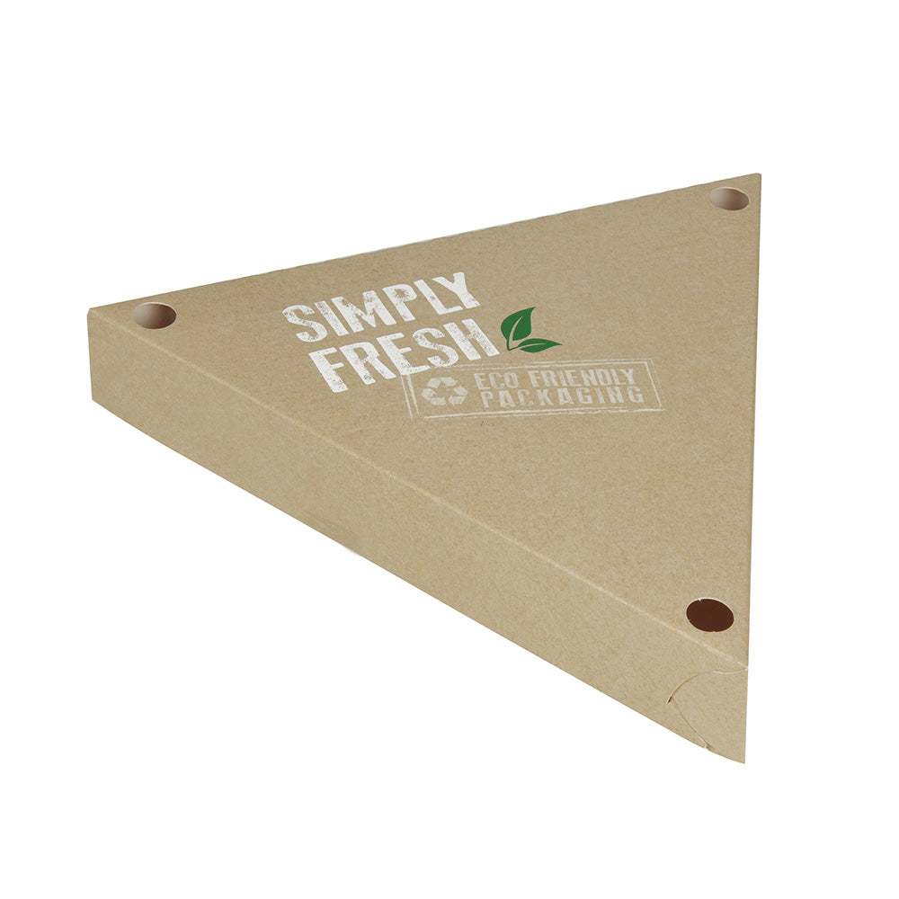 Οικολογική βιοδιασπώμενη τριγωνική συσκευασία, κατασκευασμένη από χαρτόνι , με εσωτερική επίστρωση PE για αδιαβροχοποίηση και αντοχή στα έλαια, διαστάσεων 25cm x 25cm x 25cm x 4cm. Δεν χρειάζεται συναρμολόγηση (easy open). Ιδανική για μεταφορά κρέπας.