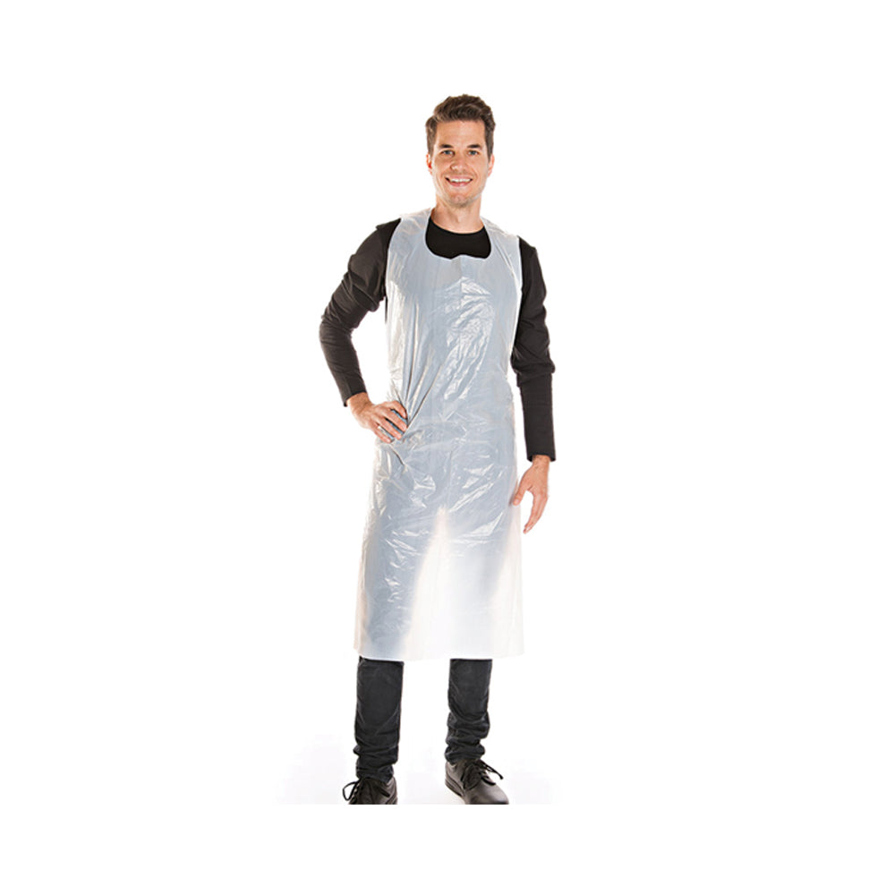 Λευκές πλαστικές ποδιές μιας χρήσης από ειδικού τύπου πλαστικό διαστάσεων 123cm x 69cm. Εφαρμόζει σωστά σε όλους τους σωματότυπους και προστατεύει από υγρά και βρωμιές λόγω της αδιαβροχοποίησης της. Συσκευασία 100 τεμαχίων.