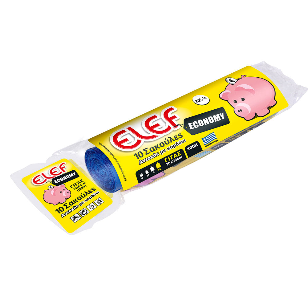 Επώνυμη σακούλα Elef με κορδόνι μεσαίων βαρών 70cm x 95cm. Ιδανική για πολύ μεγάλους κάδους κουζίνας και εξωτερικών χώρων.